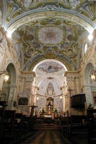 Il complesso della chiesa di S. Gallo è composto dalla chiesa, a navata unica con presbiterio a pianta quadrata, abside semicircolare e cappelle laterali rettangolari; dalle cappelle della Via Crucis, che fiancheggiano la strada che porta alla chiesa; dall'atrio sud, con quinta scenografica trompe l'oeil che introduce all'ingresso sud della chiesa.