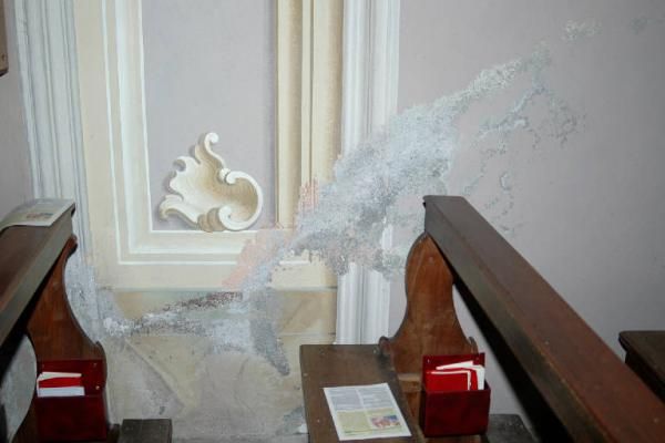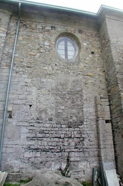 Una porzione del prospetto nord della chiesa, corrispondente alla zona del presbiterio, è costituito da una muratura con diverse stratificazioni, in conci più o meno regolari lasciati faccia a vista. Il prospetto e gli interni dell'atrio sud sono intonacati e dipinti.