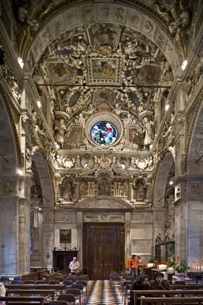 All’interno del Santuario spicca l’organo, un’opera gigantesca con 2200 canne - tra i più grandi d’Europa - appoggiato su otto colonne ricavate da una breccia rossa, il cosiddetto Macchiavecchia proveniente da Arzo nel Canton Ticino. L’altare maggiore, ricco di intarsi in pietra policroma, venne realizzato nel 1748 in Nero di Varenna, un calcare cavato sul Lago di Como che, lucidato, assume l'aspetto di un marmo; esso è opera di Giovanni Battista Galli, un artista di Clivio al quale si devono anche le balaustre del medesimo altare, nonché quelle dell’altare dell’Apparizione.