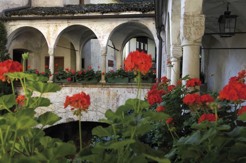 A great inner courtyard with decorative outside staircases is bordered by recessed balconies which have been walled in Roman stones. Also, a beautiful sundial marked with the year 1563 can be found in the courtyard. Furthermore, the emblem of the Boymundt-Payersberg family with the year 1560 is still visible above the entrance. The swan and the bull of the emblem are also illustrated on the emblem of Nalles.