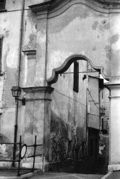 Il prospetto principale simmetricamente disegnato è caratterizzato dalla presenza sulla destra di una porta ad arco monumentale. Le strutture verticali sono in pietra intonacata.