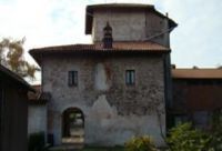 Sui muri esterni delle piccole case che si aprono sul cortile si osservano (purtroppo in cattivo stato di conservazione) parte di una serie di affreschi che ritraggono una fortificazione intorno alla quale si muovono personaggi caretteristici di quell'ambiente: soldati, cavalieri, paggi.