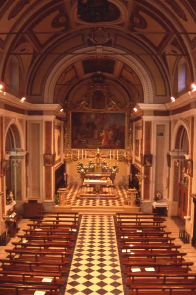 Si tratta di una chiesa a navata unica rettangolare (volte a botte unghiate) con cappelle laterali (volte a botte), presbiterio (volta a botte unghiata) e sagrestia (solai con struttura non verificabile), con locale soprastante, che si trova dietro la parete che chiude il presbiterio.