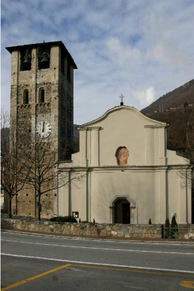 La chiesa sorge all'interno del centro abitato di Sorico lungo la via Regina ed è preceduta da un sagrato collocato ad un livello inferiore rispetto al piano stradale. La facciata settecentesca, con timpano mistilineo, è scandita da semplici lesene e presenta al centro un portale in marmo di Musso con eleganti cordonature e nella parte superiore una nicchia con un affresco ottocentesco raffigurante la Gloria di S. Stefano. Sul lato sinistro della facciata svetta il massiccio campanile a torre caratterizzato da lesene angolari e da fasce di archetti pensili.