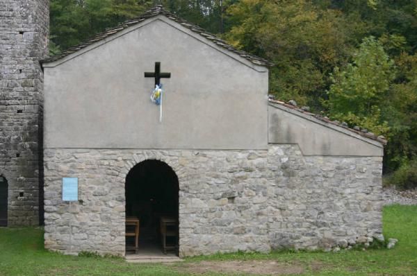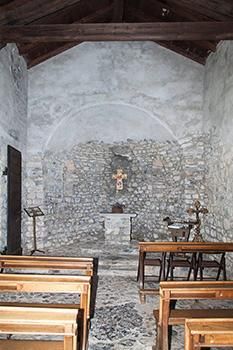 Il resto dell'edificio giaceva invece sepolto sotto una coltre di detriti e massi, parte marginale di una frana più grande, venuta giù dalle pendici del Monte Galbiga nel XVII secolo.