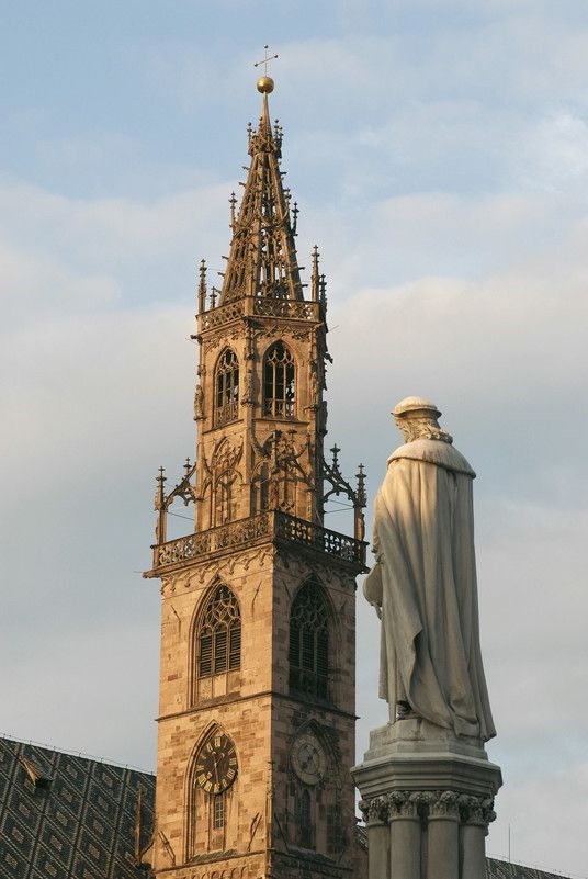 Il Duomo di Bolzano si trova nel centro della città, in Piazza Walther ed è dedicato a Maria Assunta. La cattedrale, in stile romanico e gotico, fu costruita nel XI secolo. Della prima basilica romanica restano solo le fondamenta, visibili all'interno, mentre l'affascinante esterno gotico fu ricostruito dopo la seconda guerra mondiale. Il rivestimento, realizzato nel XIV secolo dai fratelli Schiche di Augusta, in marmo rosso e giallo, è ornato con doccioni e balaustre abilmente casellati. Il campanile filigranato, costruito nel 1517 dallo scalpellino svevo, Hans von Schussenried, e decorato da finestre ogivali ed archi rampanti, poggia sull'antica base quadrata di origine romanica. Particolarmente interessante è la cosiddetta porticina del vino, uno dei più bei portali gotici di tutto il Tirolo, abbellito da diverse statue. La peculiarità di questo edificio consiste proprio nel melange di due culture, una proveniente dal nord, l'altra dal sud. Lo riscontriamo anche all'interno nel contrasto tra l'arte gotica d'impronta nordica del pulpito e delle due rappresentazioni della Madonna, e il carattere rinascimentale degli affreschi che ricoprivano tutte le pareti.