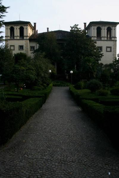 La scala, decorata con cornici in pietra conduce all'atrio del piano interrato e alla terrazza sul lago. Il giardino, che un tempo ospitava piscine e uccelliere, è costituito da terrazzamenti digradanti verso il lago.