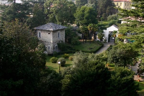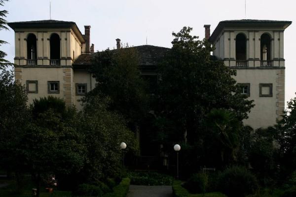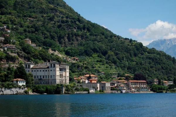L'edificio, realizzato utilizzando i resti di una struttura fortificata, ne conserva alcune porzioni murarie a lato della scala di accesso verso il giardino. Dal giardino si accede all'edificio tramite una scalinata di ingresso che conduce alla loggia, posta sul lato nord, che a sua volta introduce al salone principale a doppia altezza con vista sul lago.