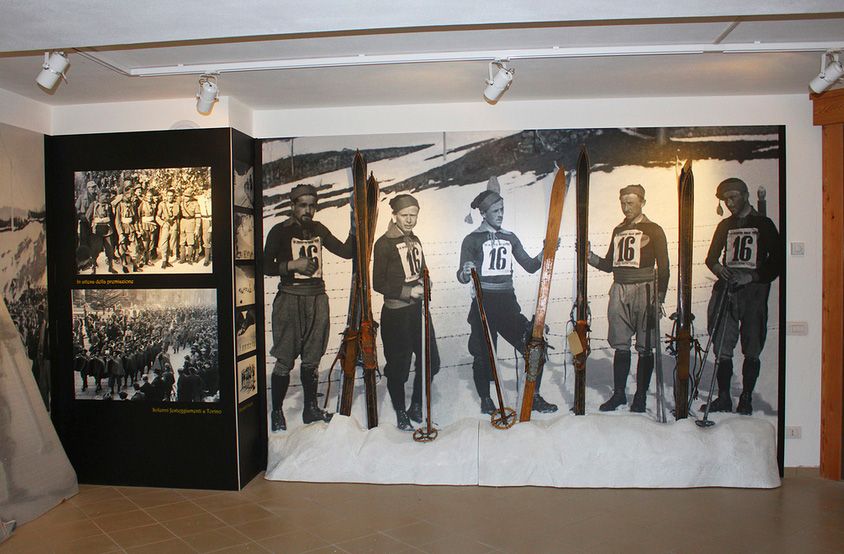 La storia avvincente di montanari che seppero trasformarsi in campioni dello sci, sino a giungere a vincere nel 1938 le Olimpiadi di Garmisch, raccontata nella scala che ospita la sede di uno dei primi sci club italiani.