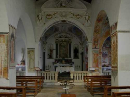 Sulla parete della navata sinistra sono visibili alcuni affreschi quattrocenteschi, di gusto popolare, raffiguranti una Madonna con Bambino, datata 1483, una Madonna del Latte, datata 1497, una Crocifissione, un'altra Madonna con Bambino ed una Madonna in Trono. Il pilastro sinistro conserva una singolare raffigurazione di S. Sebastiano trafitto dalle frecce e le figure di S. Bernardino e S. Antonio abate. Sul pilastro opposto campeggia la figura di S. Miro collocata in corrispondenza del luogo di sepoltura. Nella navata destra è possibile ammirare un interessante ciclo cinquecentesco, realizzato da Sigismondo De Magistris nel 1526, come testimonia un'iscrizione sulla parete, che comprende diverse figure sacre lungo le pareti e la volta.