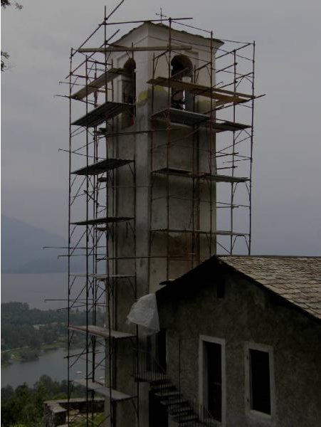 Nella parte retrostante della chiesa sorge il campanile a torre, con lesene angolari, costruito nel XVII secolo.