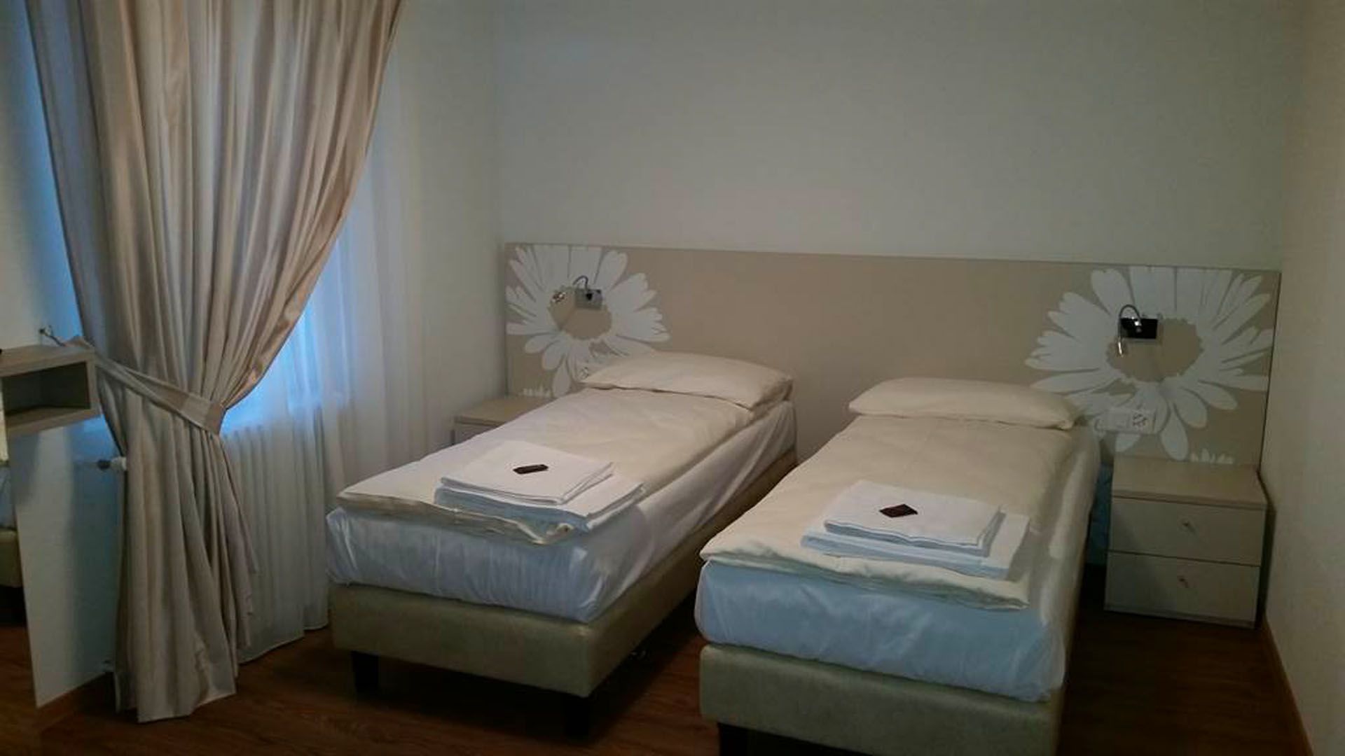 Le camere singole sono camere doppie ad uso singolo. La camera singola con letto francese è di tipo accessibile per portatori di anticap. La camera quadrupla è composta da 2 camere doppie comunicanti.