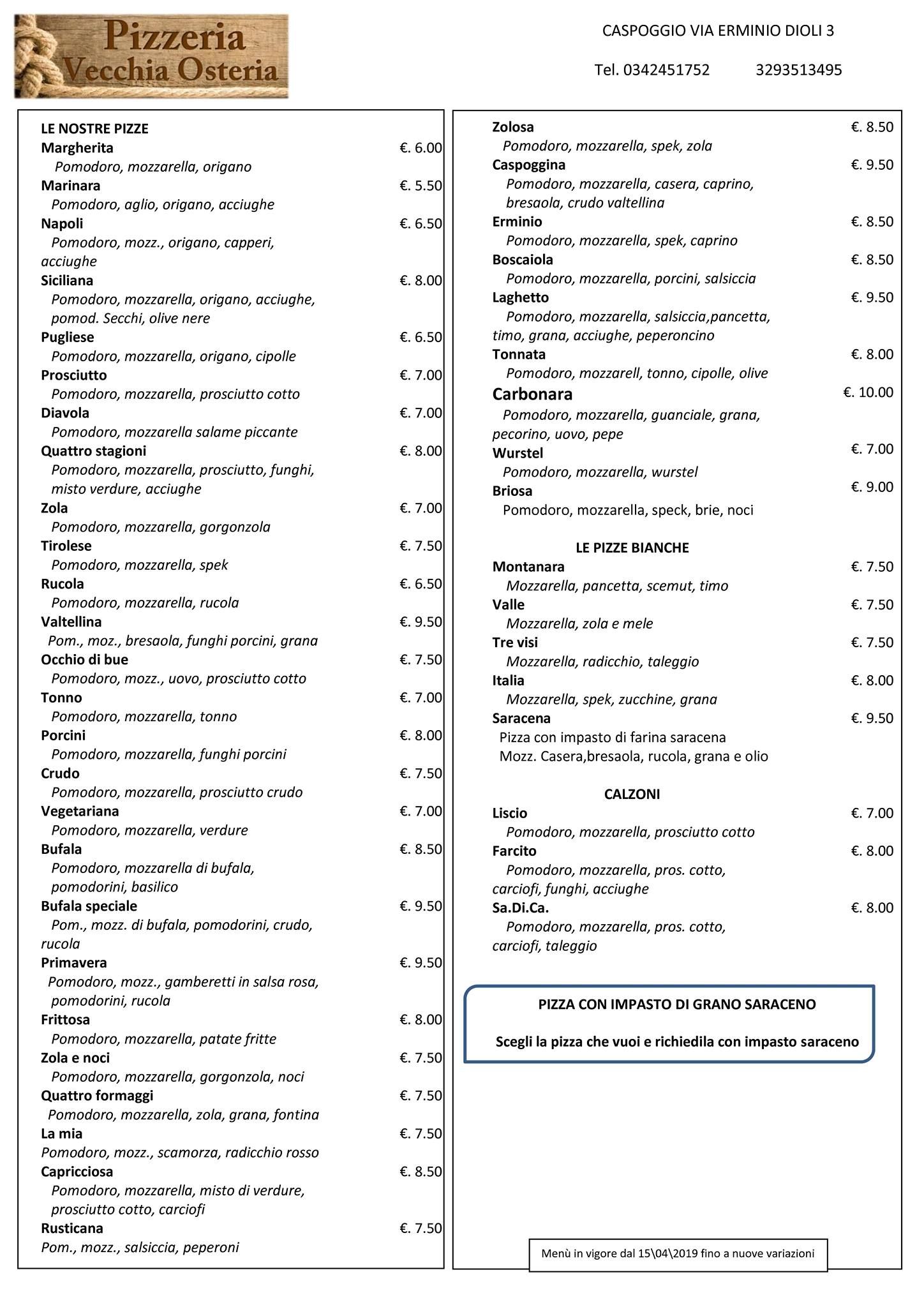 La pizzeria si trova nel centro storico di Caspoggio (SO) e dispone di forno a legna.