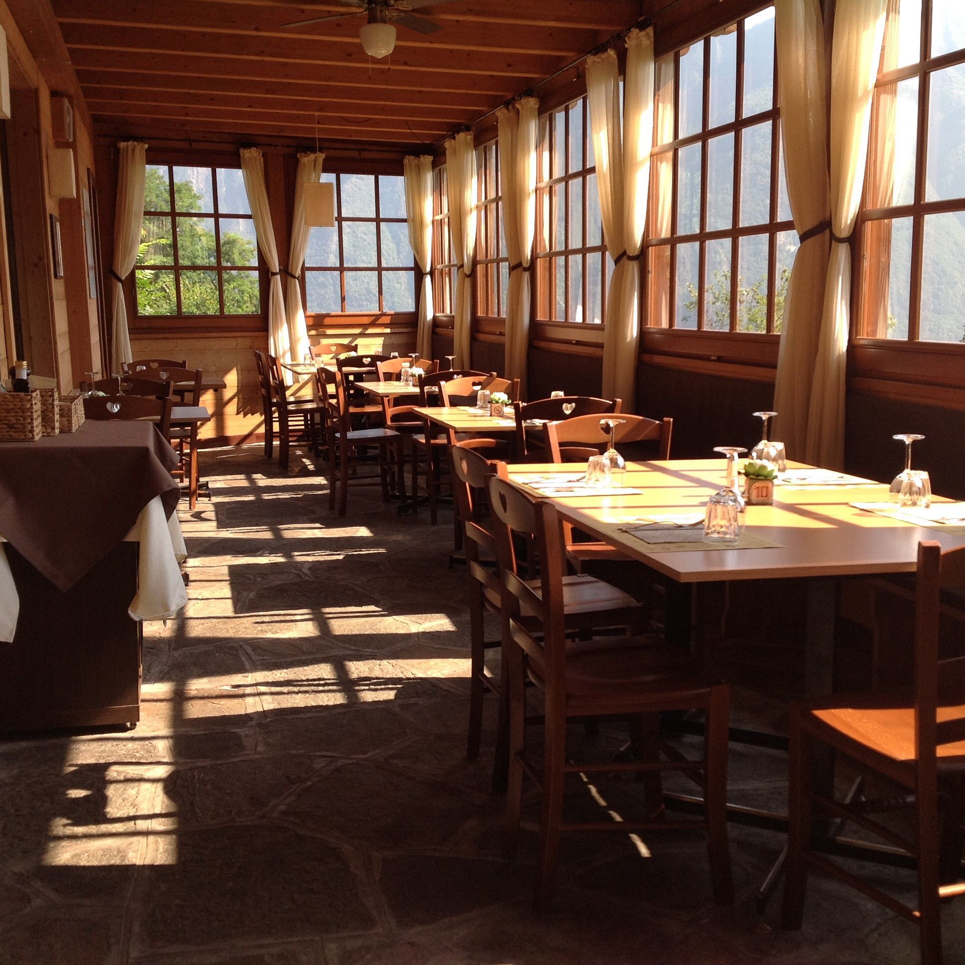 Durante la bella stagione si può scegliere di mangiare sulla nostra terrazza esterna (circa 60 posti), su caratteristici tavoli di sasso locale per respirare aria pura immersi nella natura.