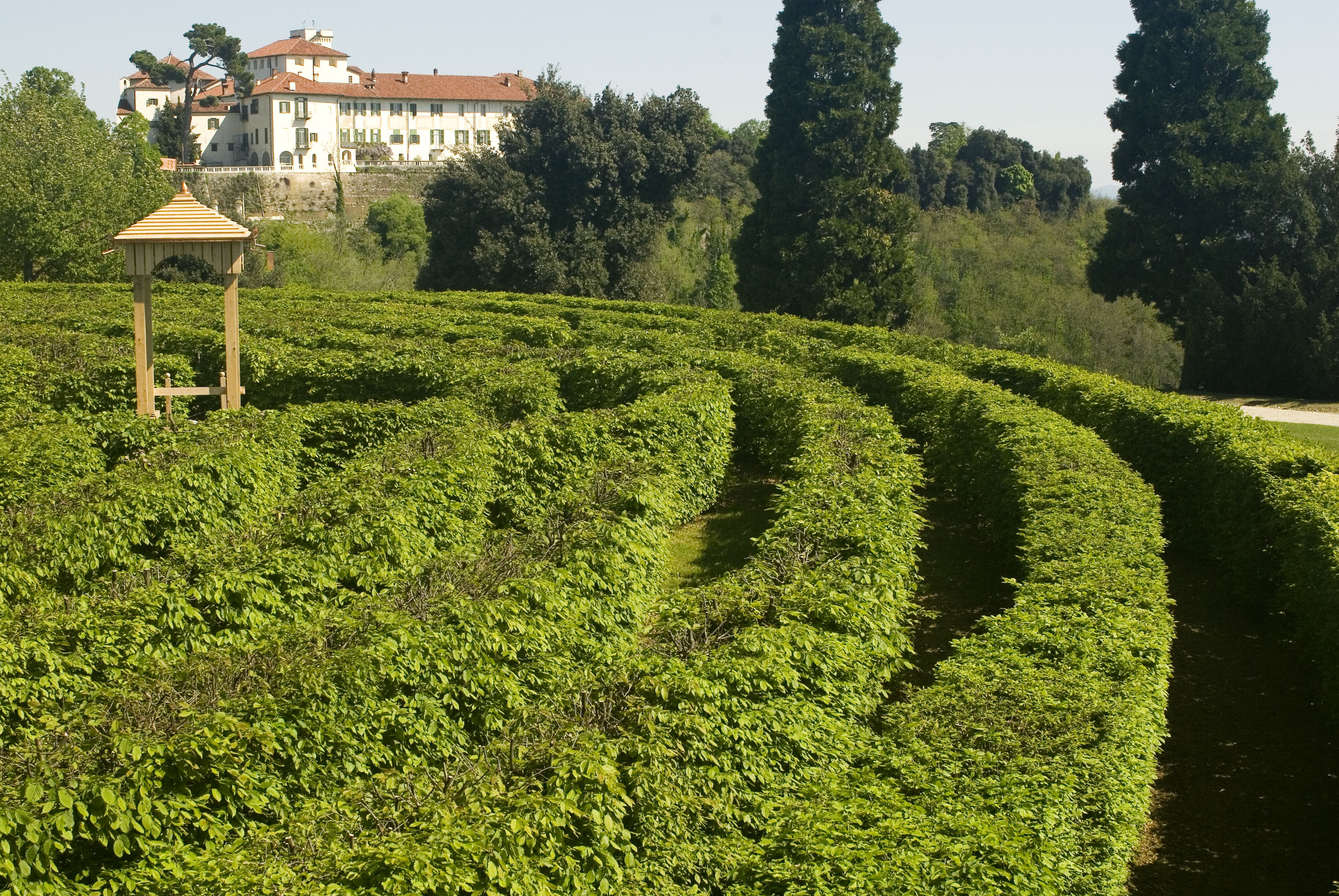Intorno, un monumentale parco romantico con uno dei più grandi labirinti d’Italia, un maestoso viale alberato, ampie radure e angoli scenografici che a primavera si inondano di eccezionali fioriture.