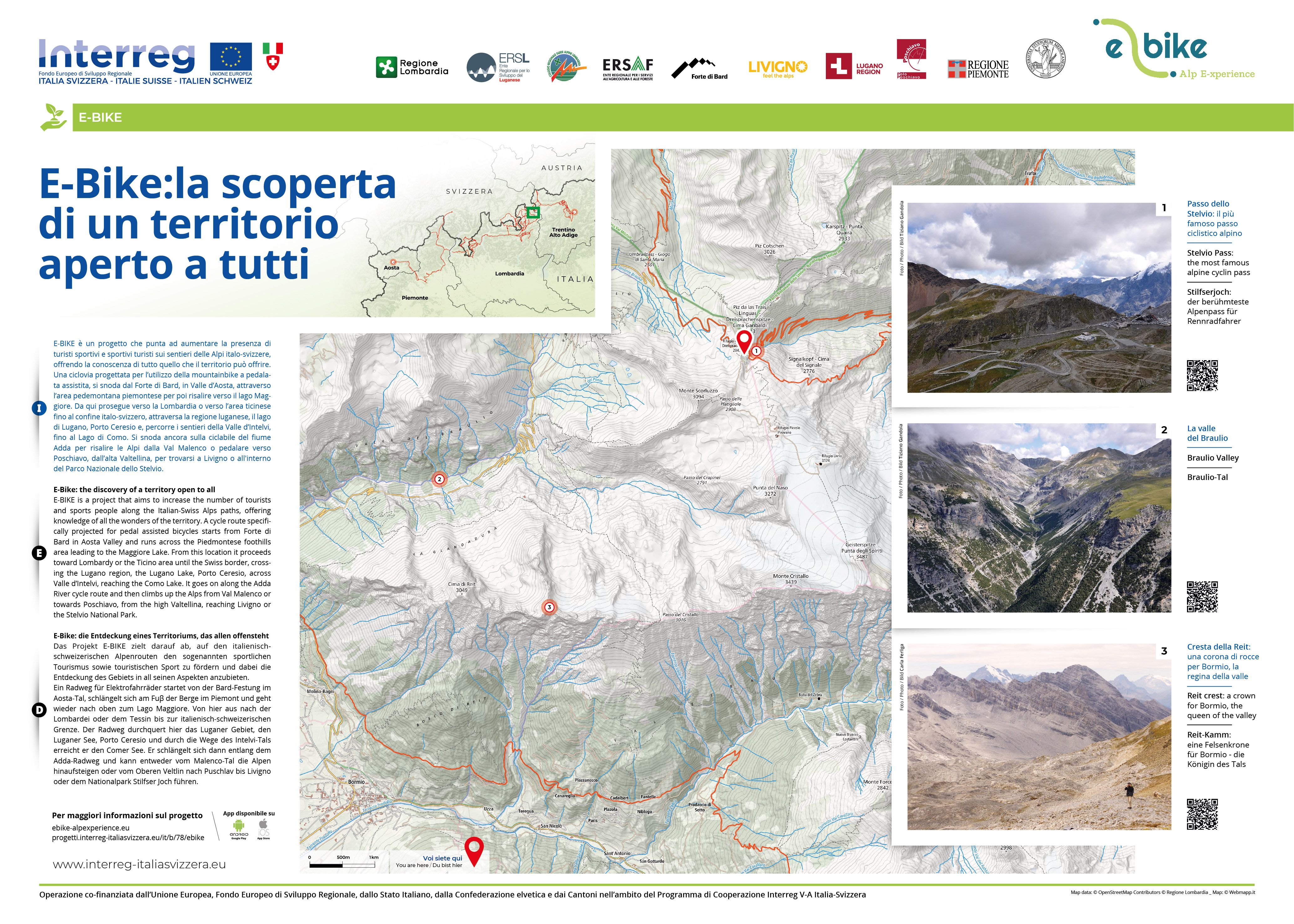 Ventisei arditi tornanti salendo da oriente, ventotto da occidente: è la strada che attraverso il Giogo dello Stelvio congiunge da secoli l'alta Valtellina con la Val Venosta, affacciandosi sullo spartiacque elvetico e permettendo, attraverso il Giogo di Santa Maria - o Passo di Umbrail, secondo la denominazione più antica - di discendere a settentrione nella Val Monastero, tributaria anch'essa dell'alto corso dell'Adige.