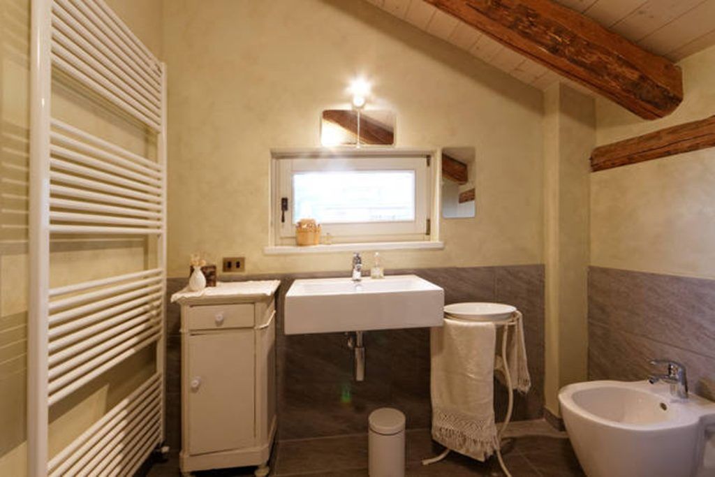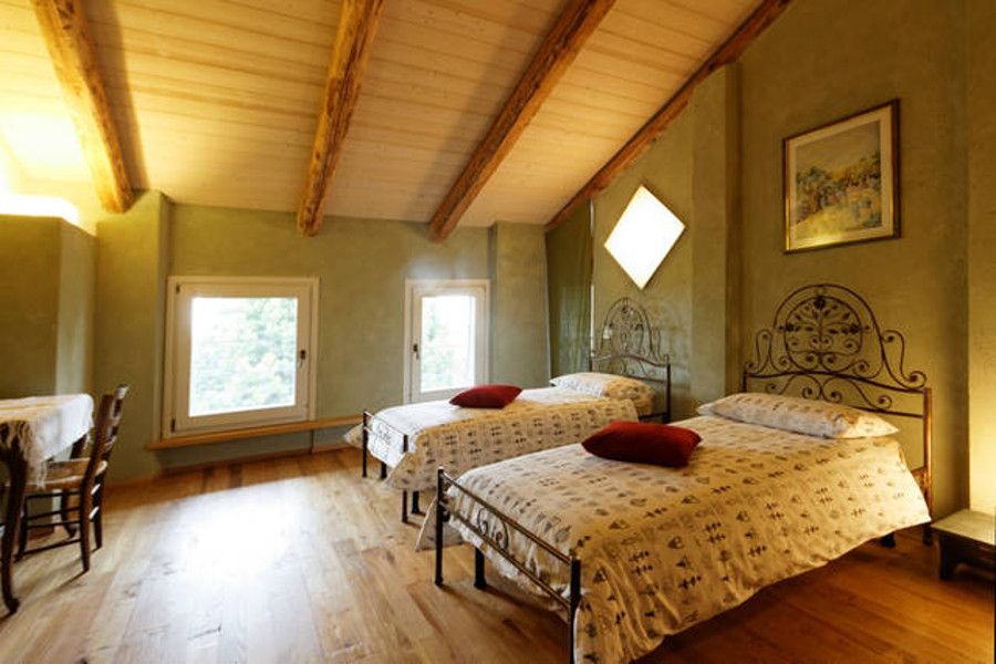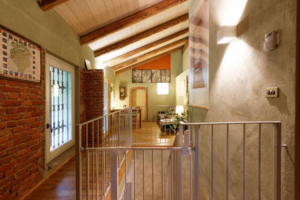 Strutturata su due piani, l’ultimo piano è mansardato e arredato con gusto: parquet in legno di castagno recuperato da vecchie assi, mattoni e travi a vista per il tetto rendono l’ambiente caldo e accogliente.