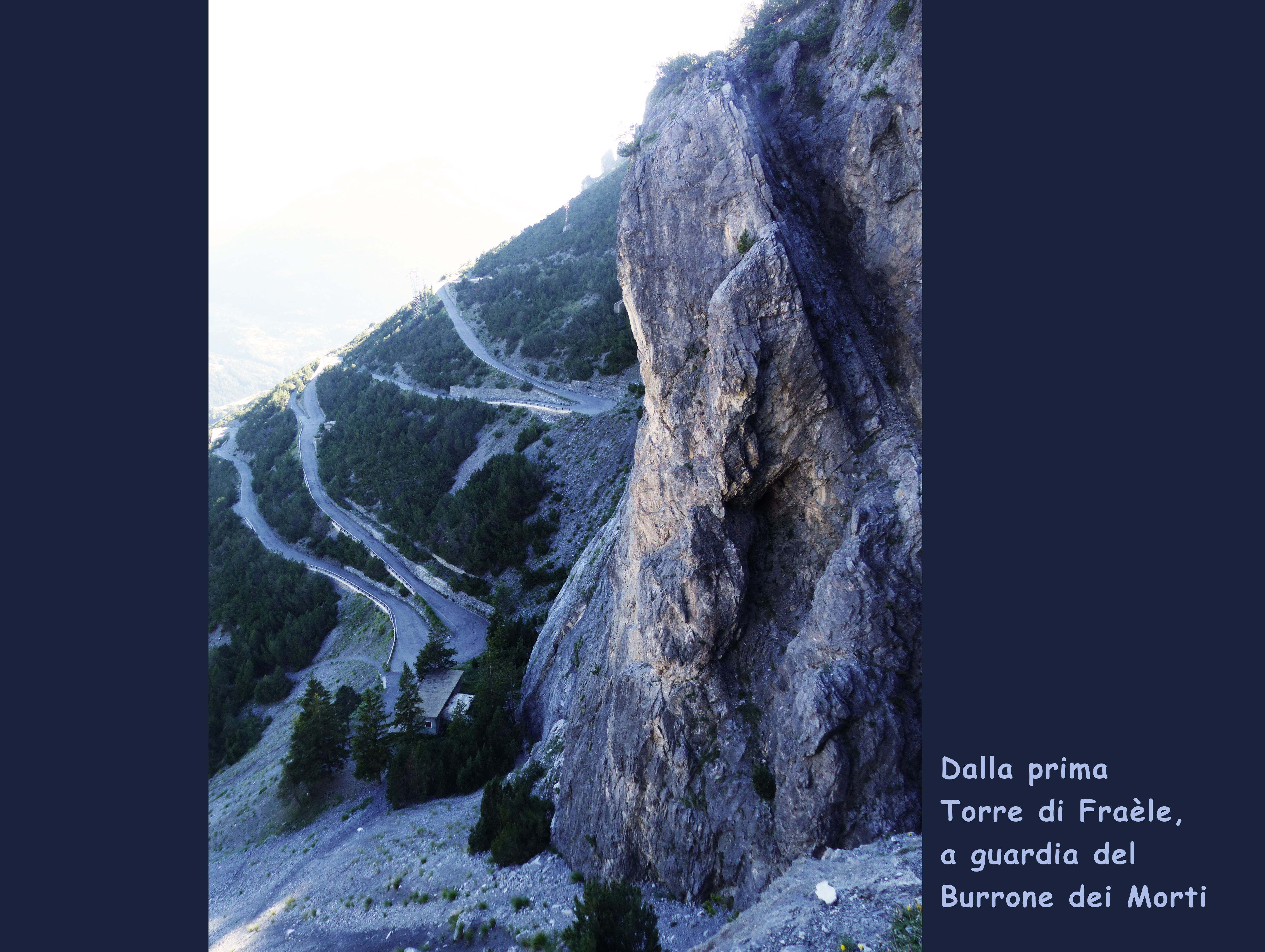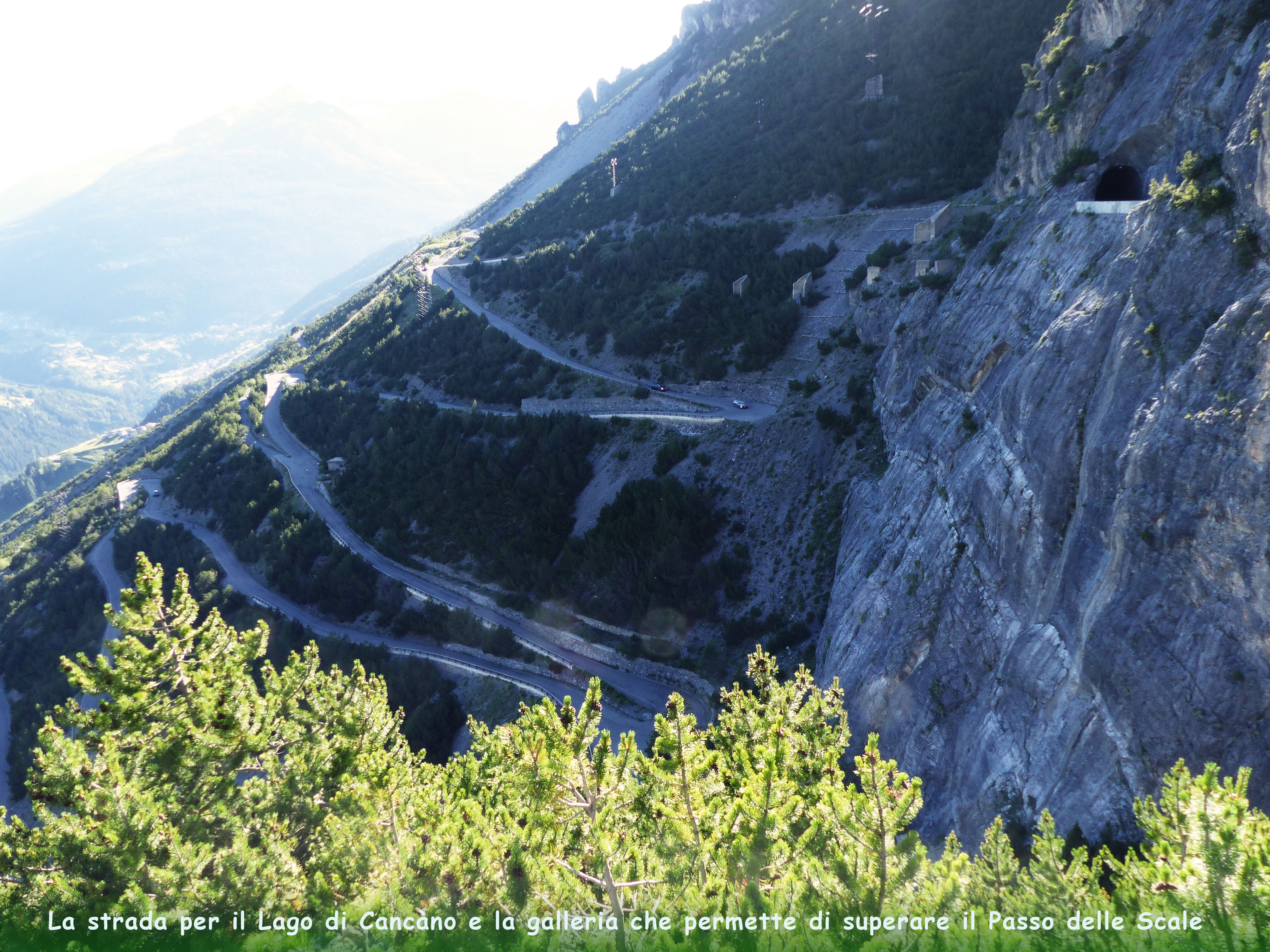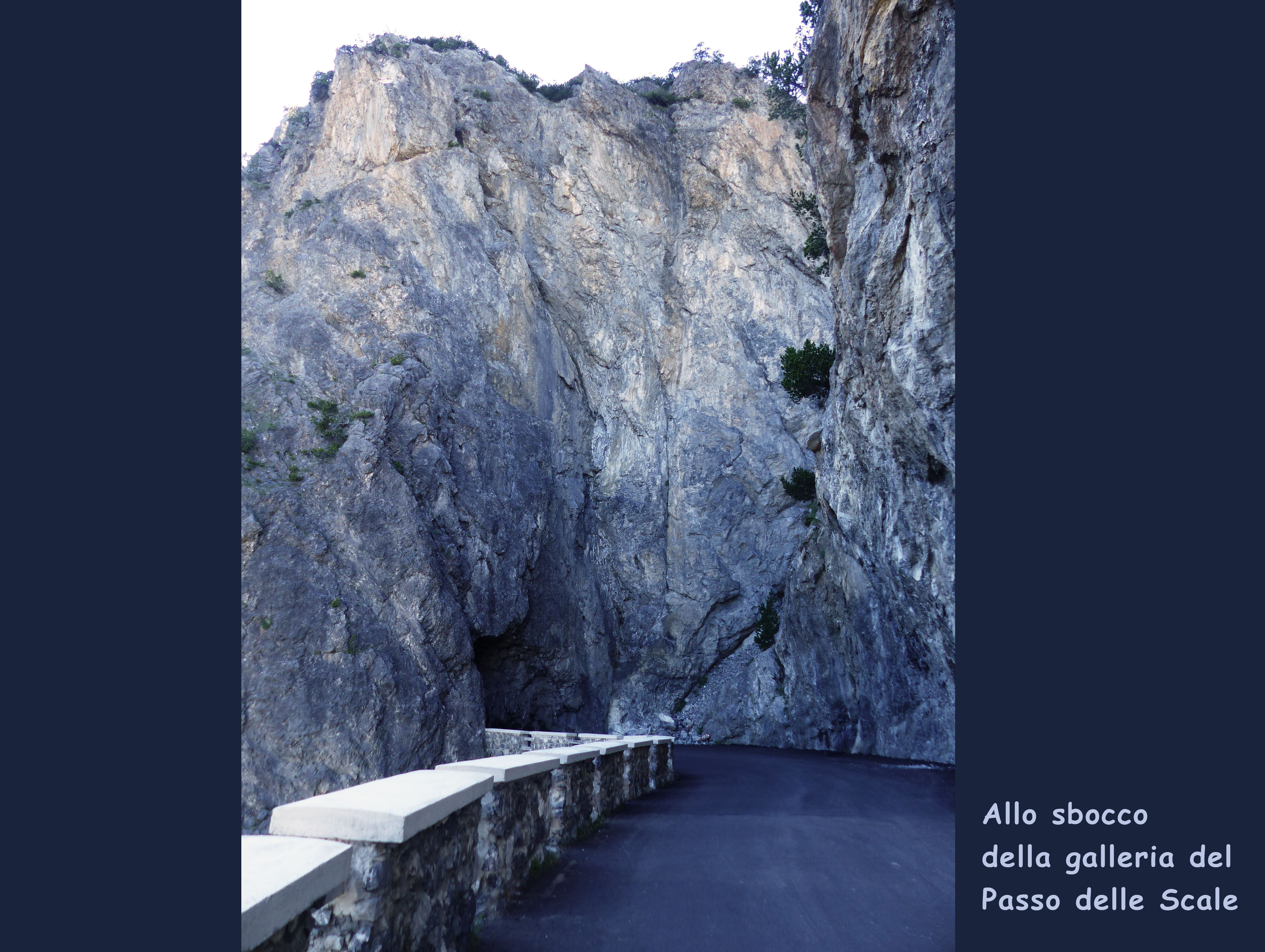 Attorno a q. 1990, però, una spaventevole muraglia strapiombante impedisce di procedere oltre, se non attraverso una stretta galleria, scavata nella viva roccia solo nel secolo scorso, quando si decise di costruire le dighe. Essa sbuca, dopo poche centinaia di metri, sul Passo delle Scale, un aereo balcone sospeso sul vuoto, dal cui orlo due possenti torri quadrate, ormai in rovina, sorvegliano la conca di Bormio, quasi 700 metri più sotto.